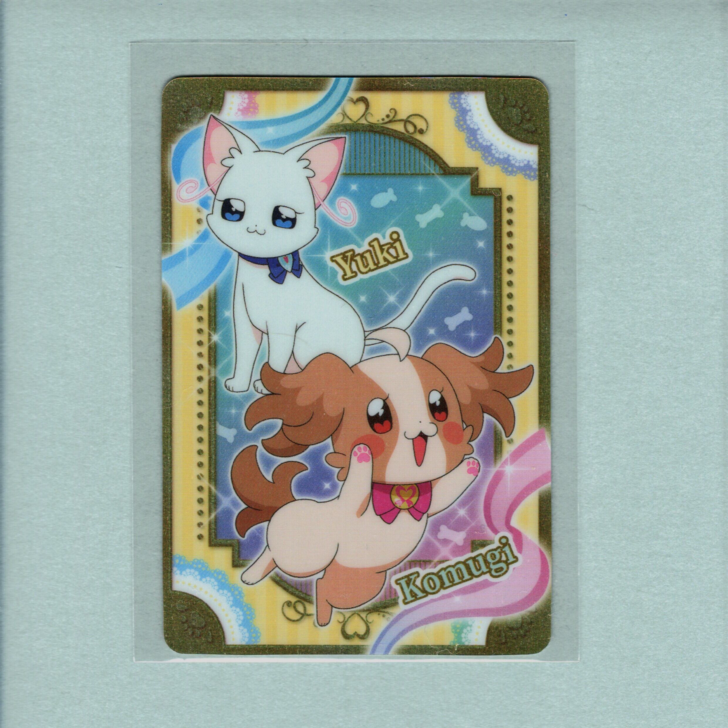『わんだふるぷりきゅあ!』より、犬飼こむぎと猫屋敷ユキの仲睦まじい姿が描かれた、豪華なキラキラ仕様の1枚です。